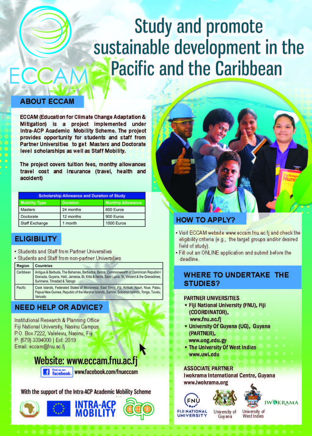 ECCAM is a mobility project that aims at academic cooperation between three higher education institutions in the Caribbean and Pacific regions.
